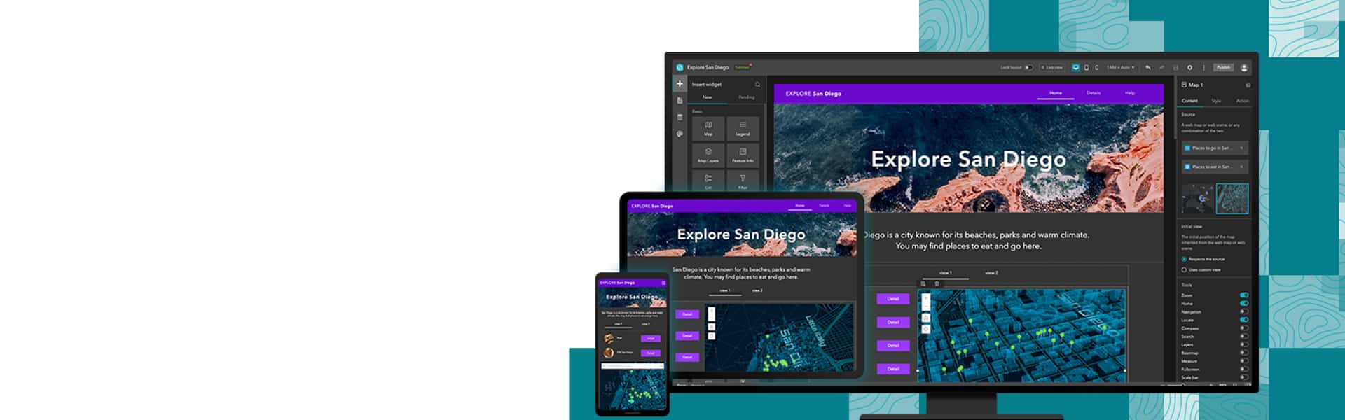ArcGIS Experience Builder คือเครื่องมือที่สามารถนำข้อมูลมาสร้าง Responsive Web Application 2 มิติ และ 3 มิติที่ทันสมัยโดยที่ไม่ต้องเขียนโปรแกรม โดยสามารถกำหนดหน้าตา Application ได้แบบยืดหยุ่นตามผ่านการลาก-วาง (Drag-and-Drop) ความต้องการ พร้อมกับการเลือก Widgets จำนวนมาก
